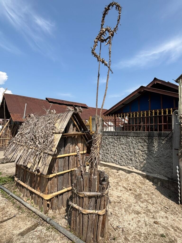 Another old custom is the Nago, or prayer hut, in which periodically the sacrifice of a monkey from the nearby forests is made to propitiate a spirit that was killed in the past by someone in the Apatani community but who then sent down an epidemic in vengeance. To prevent further harm by this spirit, certain clan members (I did not get who they are) perform an age-old ritual in a very small hut, with each clan possessing their own Nago for this purpose.