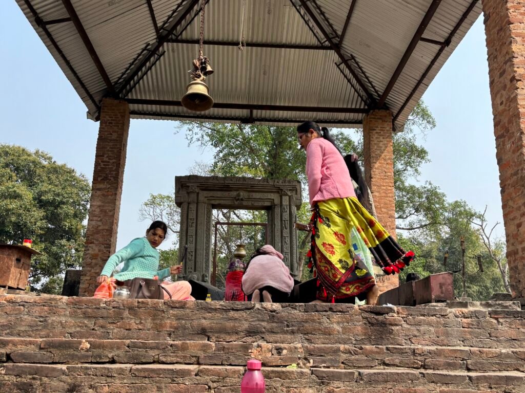 During our first day with a guide, Bill and I visited several locations in Tezpur, Assam, founded by the British and once an important trading post on the Brahmaputra River. The Da-Parbatia is a 6th century ancient site of a Shiva Temple with a carved stone gate and lingam which is still being worshipped today. It was a Monday which is when woman come to worship to ask for protection and prosperity for their husbands and the unmarried pray for a good match and it was active with chanting and offerings by the faithful women. We also visited a large park filled with local families enjoying the beautiful weather and decorated with the remains of ancient monuments piled up in a hodgepodge manner. Very tired, we also made a quick stop at the main Hindu temple in the city, rebuilt after one of the great earthquakes. It is now overlooked by a 7-story new apartment complex, with the old oil lamps being lit at the same time as modern life goes on next door.